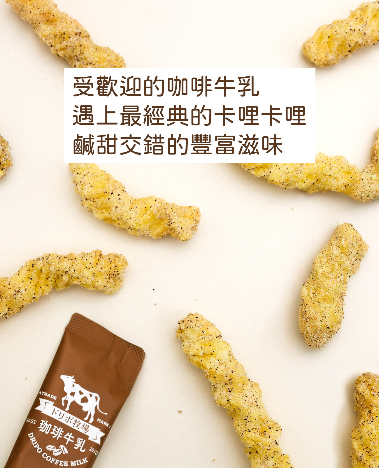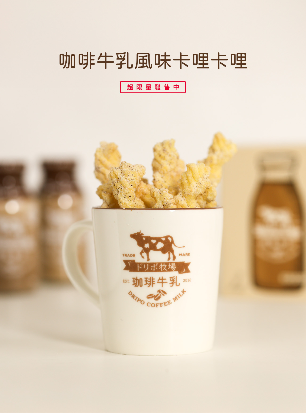 DRIPO牧場咖啡牛乳在今年過年前推出咖啡牛乳風味卡哩卡哩,廣受大家好評,小編特別將訂製的少量庫存上架販售。售完即止。