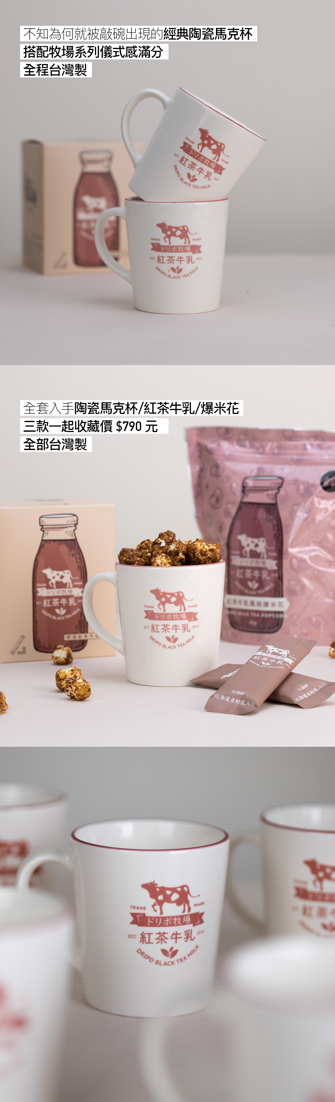 牧場陶瓷馬克杯+紅茶牛乳爆米花+紅茶牛乳即溶飲品(有糖無糖可選)優惠價790元
