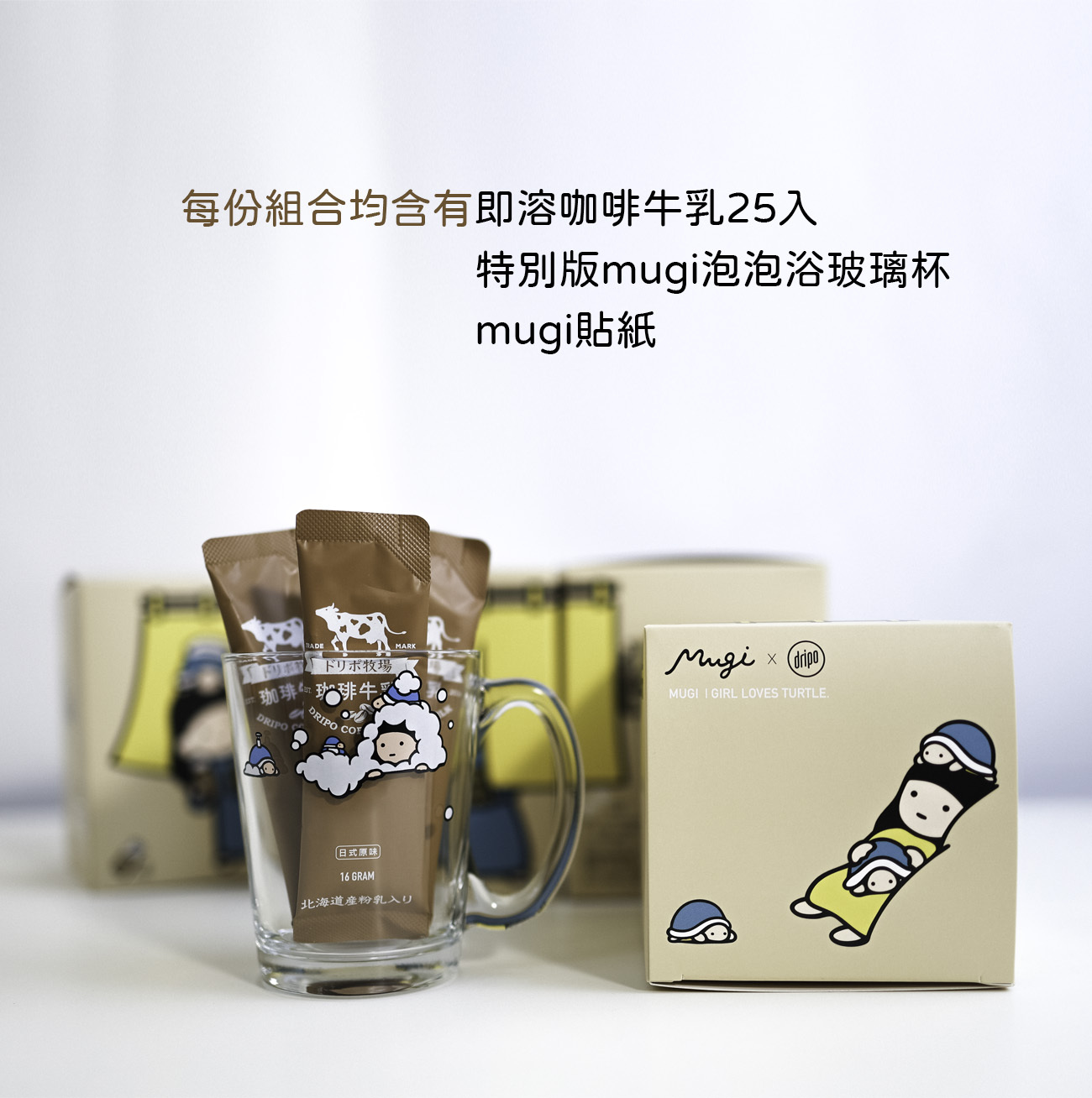 牧場系列已經連續數年廣受台灣市場喜好,濃郁的乳香滋味更是市場上少見的風味。這次我們與日本東京插畫家mugi合作推出咖啡牛乳即溶飲品聯名款,組合除了訂製包裝盒的咖啡牛乳即溶飲品外,另外還有限定版本的泡泡浴咖啡杯以及限定貼紙一張。限量推出,售完為止。