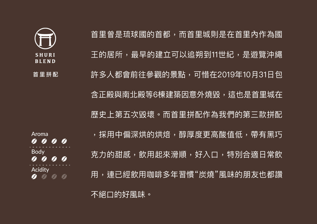 日式焙煎手法,壺屋/首里/恩納 3種拼配。