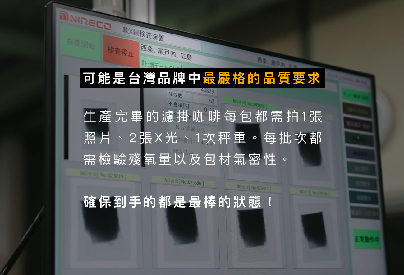 每包日本製濾掛咖啡在生產後都會經過下列測試: