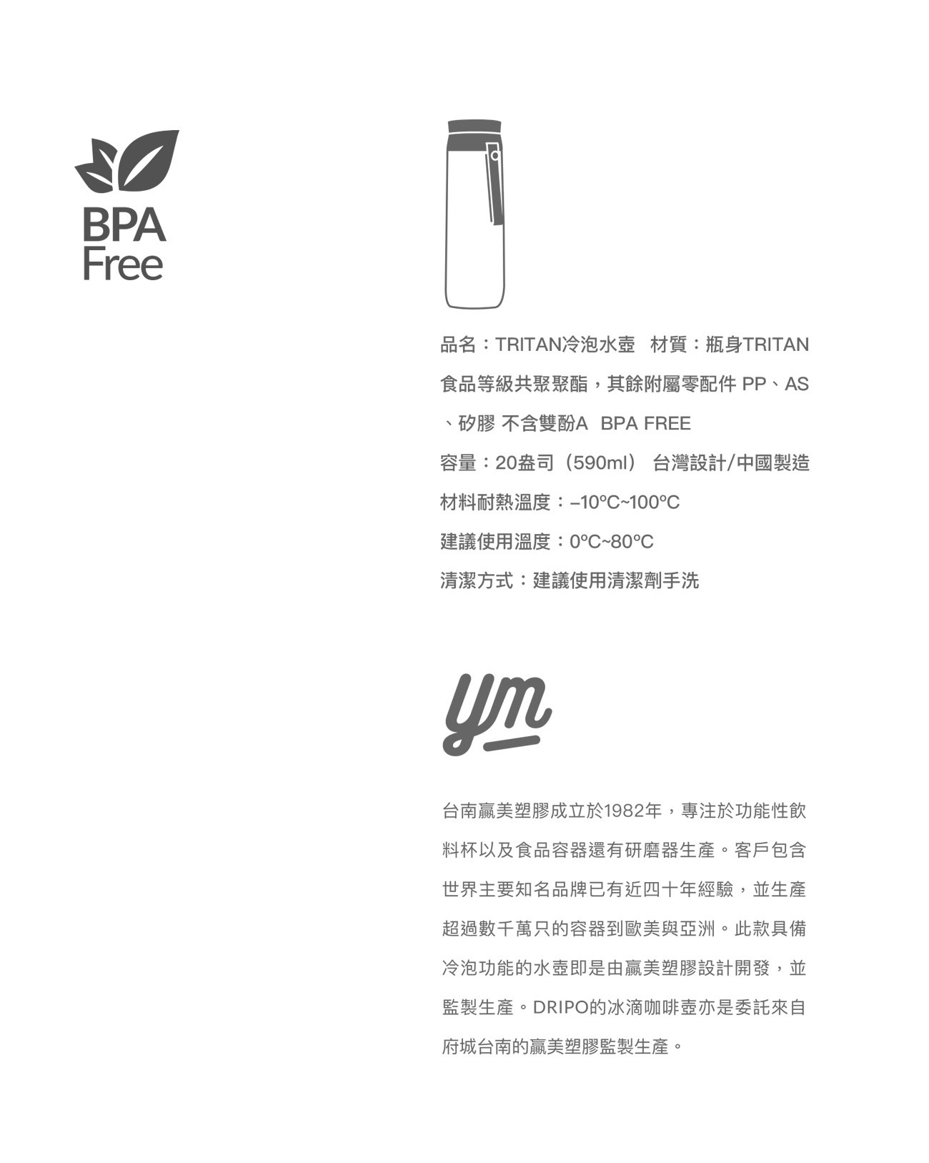 產品名稱:DRIPO沢笠製茶所 冷泡茶包 / TRITAN冷泡水壺(L)