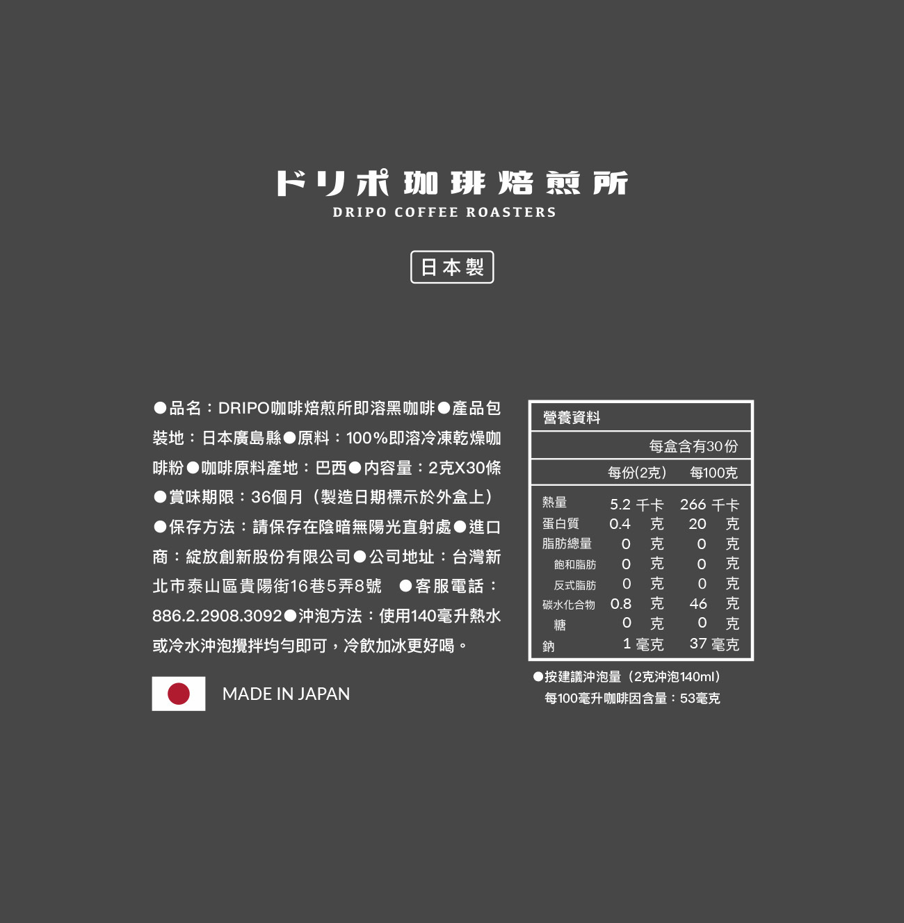 產品名稱:DRIPO咖啡焙煎所即溶黑咖啡